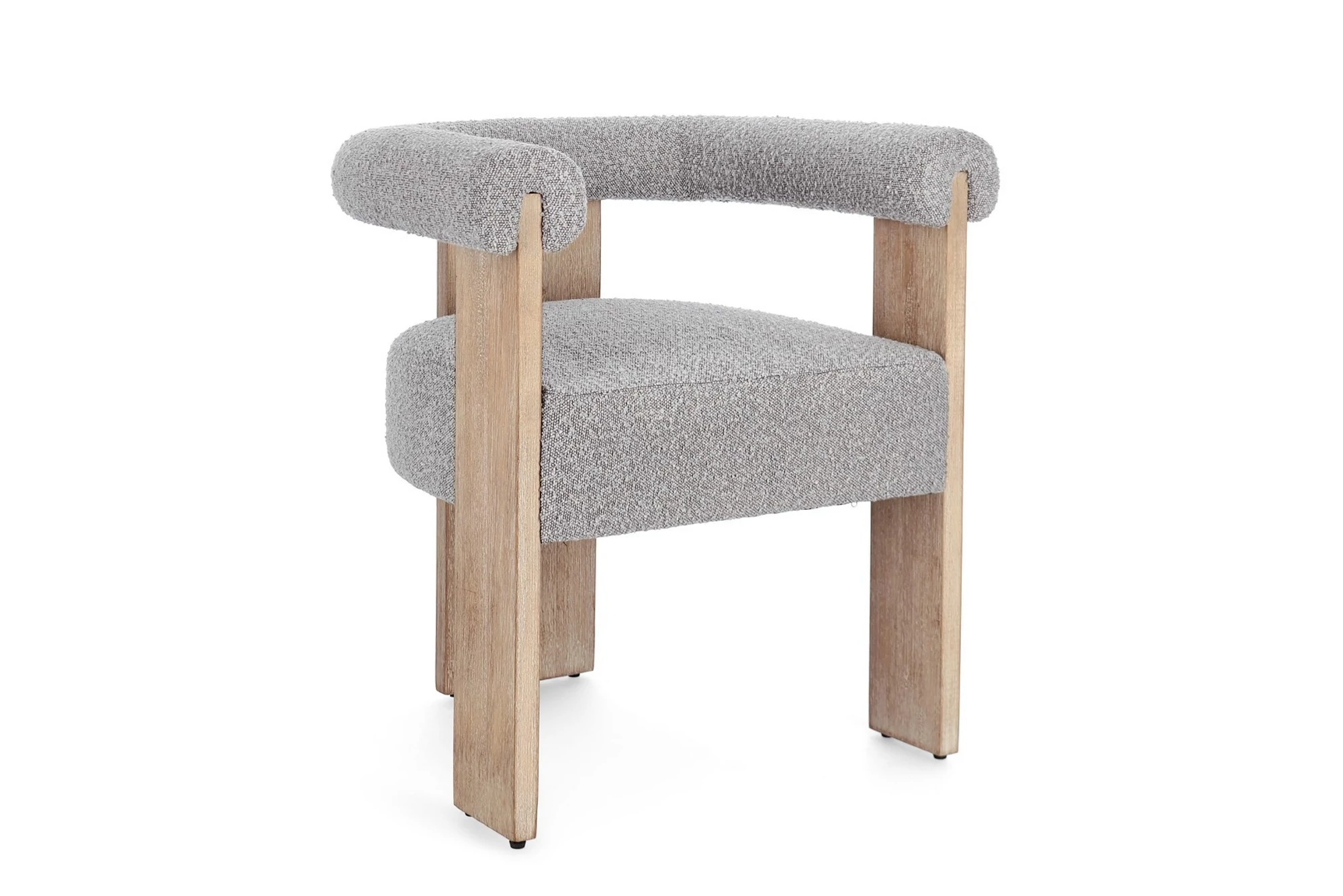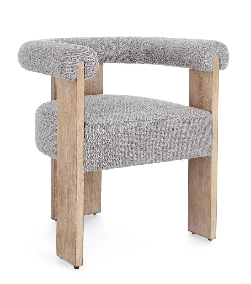 Keret fenyőfából és rétegelt lemezből készült. Gumifa lábak. Poliészter huzat (boucle' hatású). Poliuretán hab töltet, melynek sűrűsége 18/30 kg/m3. A termék összeszerelendő.