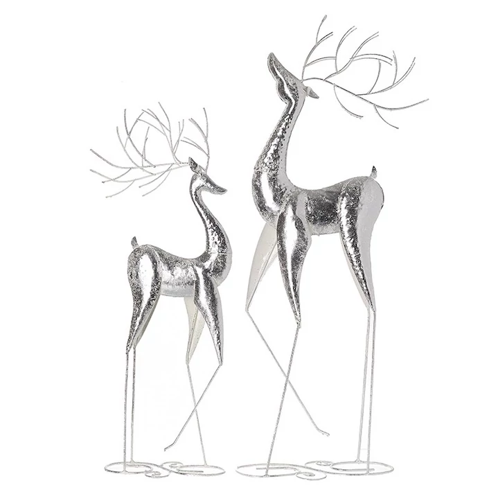 Ezüst színű, elegáns karácsonyi szarvas szett, mely tökéletes kiegészítője lesz ünnepi dekorációjának! Nagy mérete és minőségi kivitelezése garantáltan egyedivé teszi otthonát.