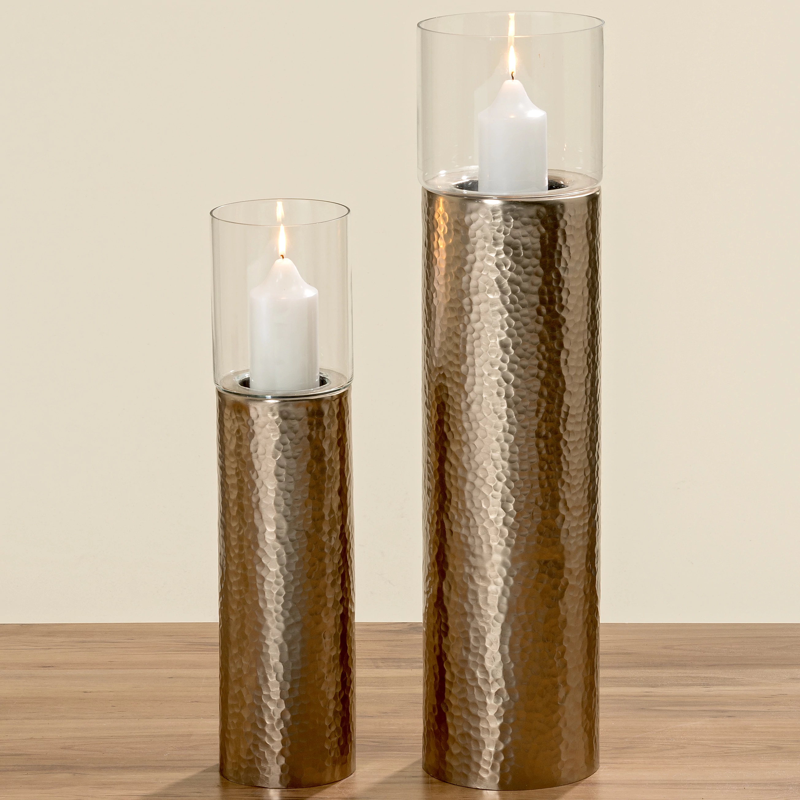 Látványos, elegáns gyertyatartó. Helyezze komódra, vagy a bejárat mellé és teremtsen kellemes hangulatot otthonában. Az üvegbúrának köszönhetően biztonságban élvezheti a gyertyák fényjátékát