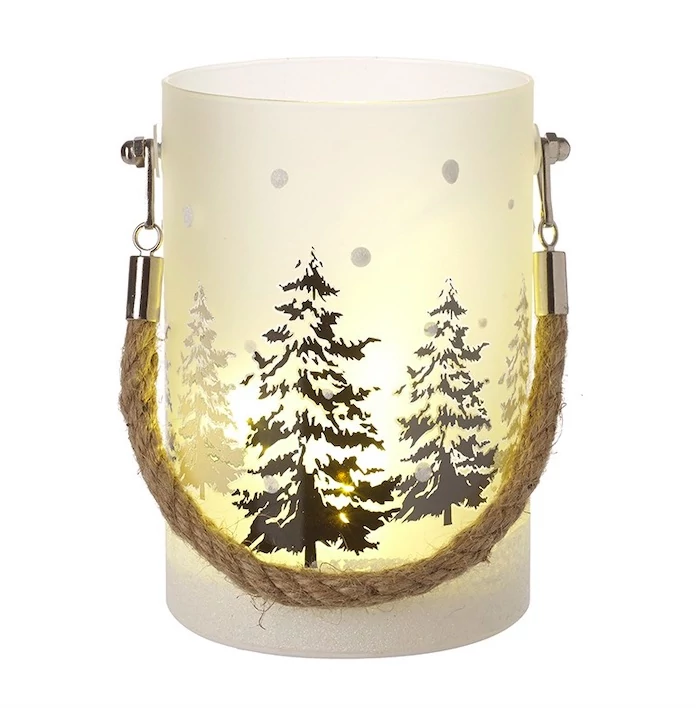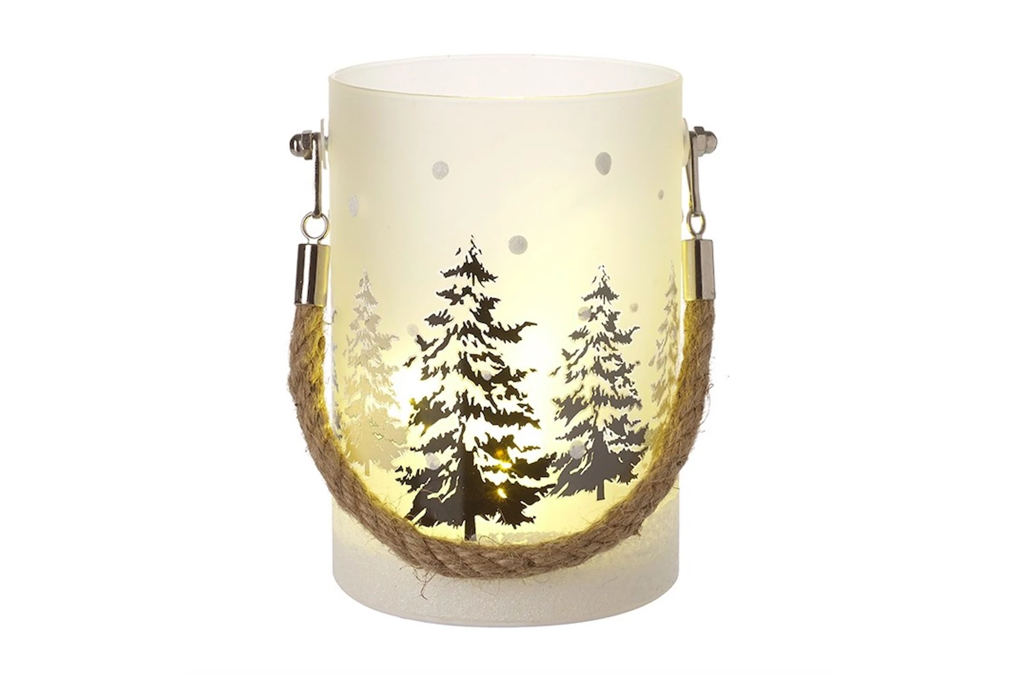 Világító, üveg, havas fákat ábrázoló, ízlésesen kidolgozott karácsonyi dísz, meghitt hangulatot varázsol otthonunkba. Felakasztható, de az asztalra helyezve is tökéletes karácsonyi dekoráció vagy ajándék.